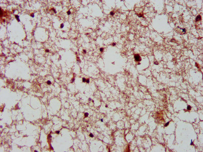 IHC image of PACO31932 diluted at 1:600 and staining in paraffin-embedded human brain tissue performed on a Leica BondTM system. After dewaxing and hydration, antigen retrieval was mediated by high pressure in a citrate buffer (pH 6.0). Section was blocked with 10% normal goat serum 30min at RT. Then primary antibody (1% BSA) was incubated at 4°C overnight. The primary is detected by a biotinylated secondary antibody and visualized using an HRP conjugated SP system.