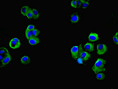 Immunofluorescent analysis of 293T cells using PACO41994 at dilution of 1:100 and Alexa Fluor 488-congugated AffiniPure Goat Anti-Rabbit IgG(H+L)