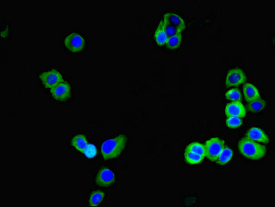 Immunofluorescent analysis of PC-3 cells using PACO36342 at dilution of 1:100 and Alexa Fluor 488-congugated AffiniPure Goat Anti-Rabbit IgG(H+L)
