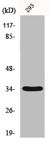 Western Blot analysis of 293 cells using GRTP1 Polyclonal Antibody