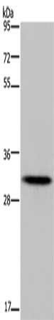 Gel: 10%SDS-PAGE, Lysate: 40 µg, Lane: Human fetal liver tissue, Primary antibody: PACO19776 at dilution 1/400, Secondary antibody: Goat anti rabbit IgG at 1/8000 dilution, Exposure time: 5 minutes
