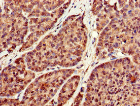 Immunohistochemistry of paraffin-embedded human ovarian cancer using PACO52586 at dilution of 1:100