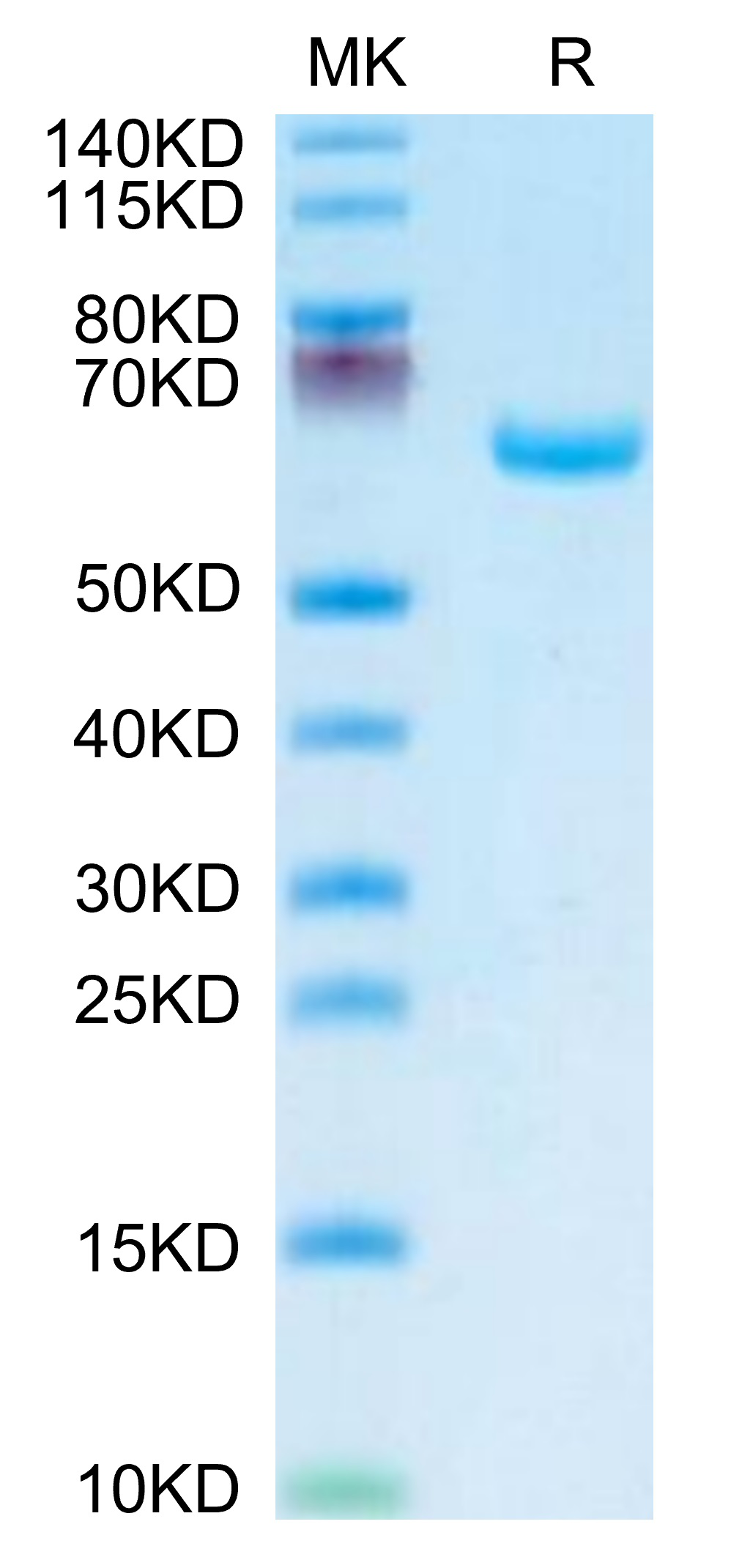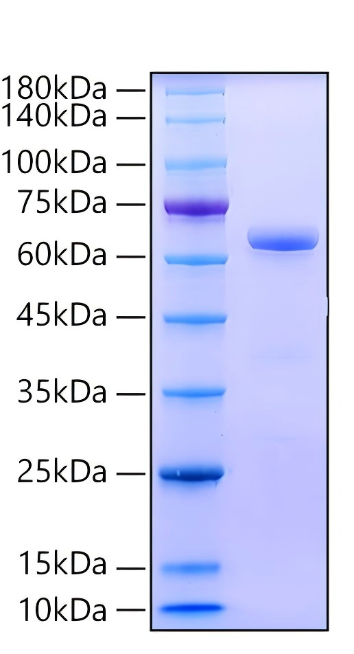 ![]() | Recombinant Human Alkaline phosphatase (Placental type) /ALPP Protein was determined by SDS- PAGE under reducing conditions with Coomassie Blue. |