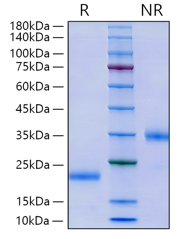 | Reconstitution: | Centrifuge the vial before opening. Reconstitute to a concentration of 0.1-0.5 mg/mL in sterile distilled water. Avoid vortex or vigorously pipetting the protein. For long term storage, it is recommended to add a carrier protein or stablizer (e.g. 0.1% BSA, 5% HSA, 10% FBS or 5% Trehalose), and aliquot the reconstituted protein solution to minimize free-thaw cycles. |