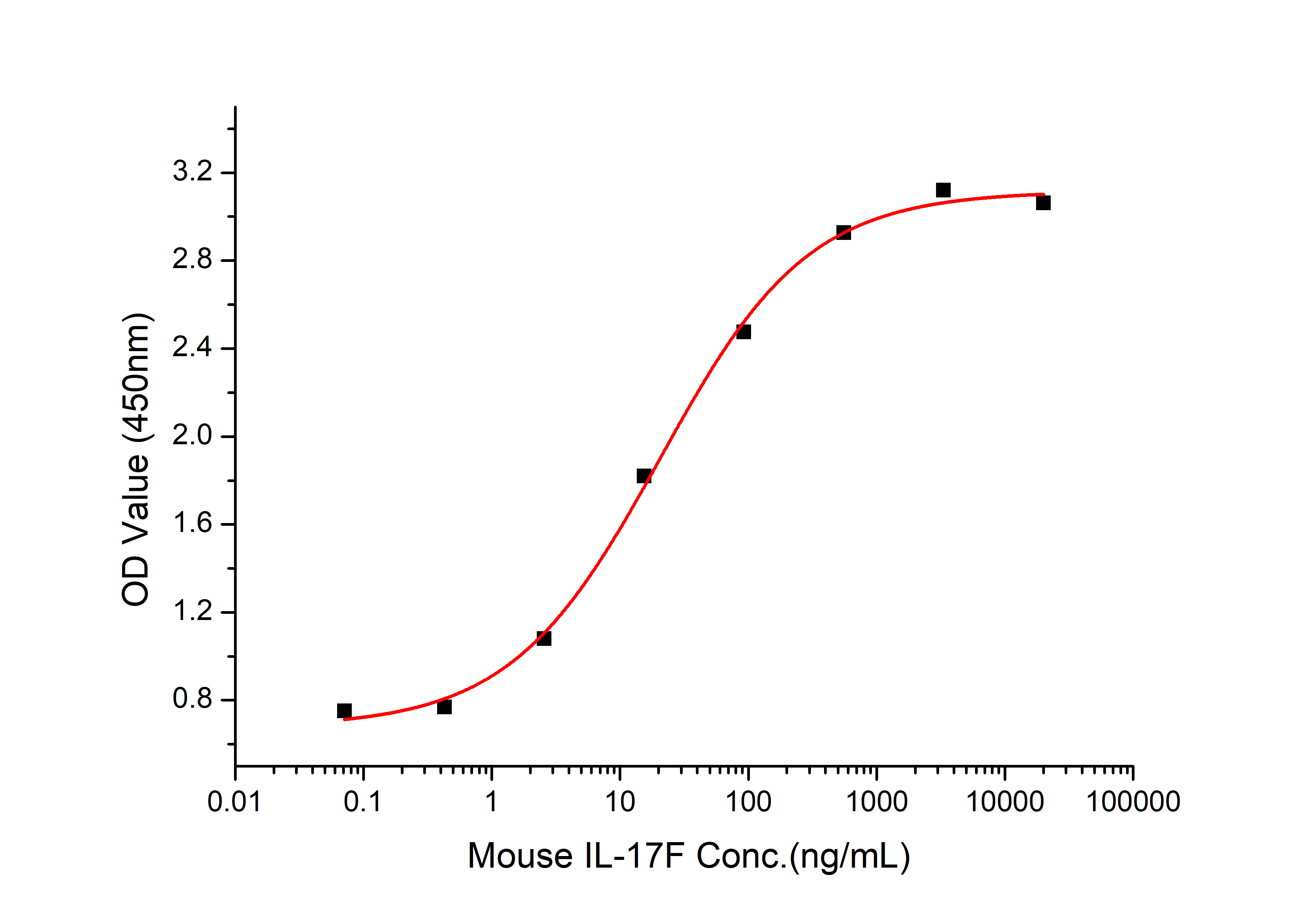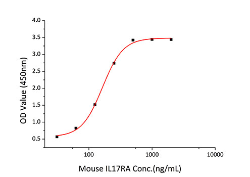 ![]() | Immobilized recombinant Mouse IL-17F at 2μg/mL (100μL/well) can bind recombinant Mouse IL17RA with a linear range of 31. 25-163ng/mL. |