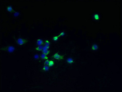 Immunofluorescent analysis of 293T cells using PACO30510 at dilution of 1:100 and Alexa Fluor 488-congugated AffiniPure Goat Anti-Rabbit IgG(H+L)