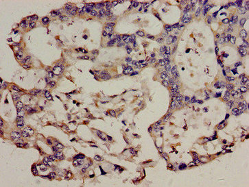 Immunohistochemistry analysis of human pancreatic cancer using PACO54098 at dilution of 1:100