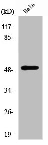 Western Blot analysis of HeLa cells using ZNF436 Polyclonal Antibody
